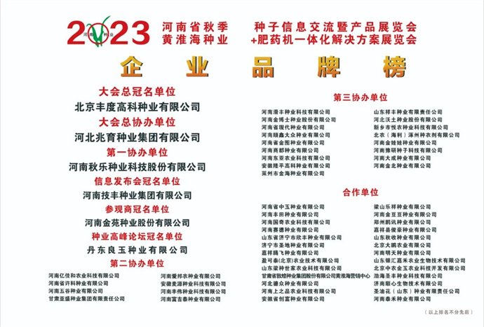 2023河南省秋季種子信息交流暨產品展覽會,為推動河南種業(yè)振興,打造種業(yè)強省為宗旨。組委會一直堅持匯聚更豐富的資源投入到展會中,回報企業(yè)及專業(yè)觀眾對于我們的支持?,F(xiàn)場吸引數(shù)萬觀眾前來觀摩訂貨。展會以“規(guī)模大、品種全、效果好、人氣旺”而飲譽種業(yè)界,影響力覆蓋全國,是國內種業(yè)企業(yè)、農資經銷商、種植大戶、政府主管機構、專家學者、行業(yè)協(xié)會等相關人士齊聚的盛會。