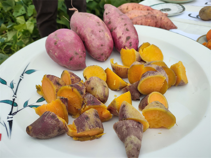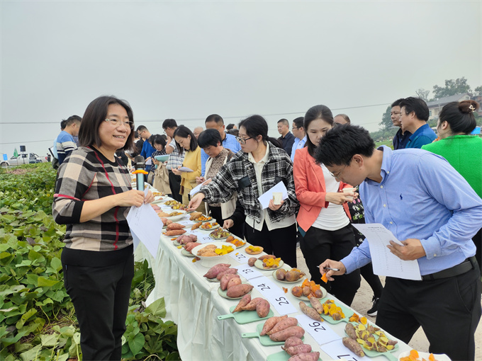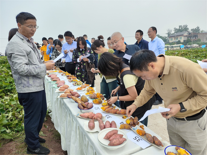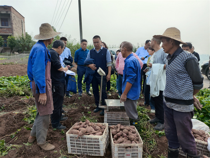 活動(dòng)當(dāng)天,專家組對(duì)100余個(gè)甘薯品種進(jìn)行了分組現(xiàn)場(chǎng)測(cè)產(chǎn),淀粉組“蘇薯28”以畝產(chǎn)3977.2公斤成為產(chǎn)量最高的品種。“畝產(chǎn)近8000斤,是個(gè)什么概念?按照統(tǒng)計(jì)口徑折算原糧大約是800公斤,而全市平均僅有330公斤,這高出了一倍多。”重慶市農(nóng)業(yè)農(nóng)村委副主任袁德勝說(shuō)道,要在有限耕地上多產(chǎn)糧、產(chǎn)好糧,良種是關(guān)鍵,出路在科技。