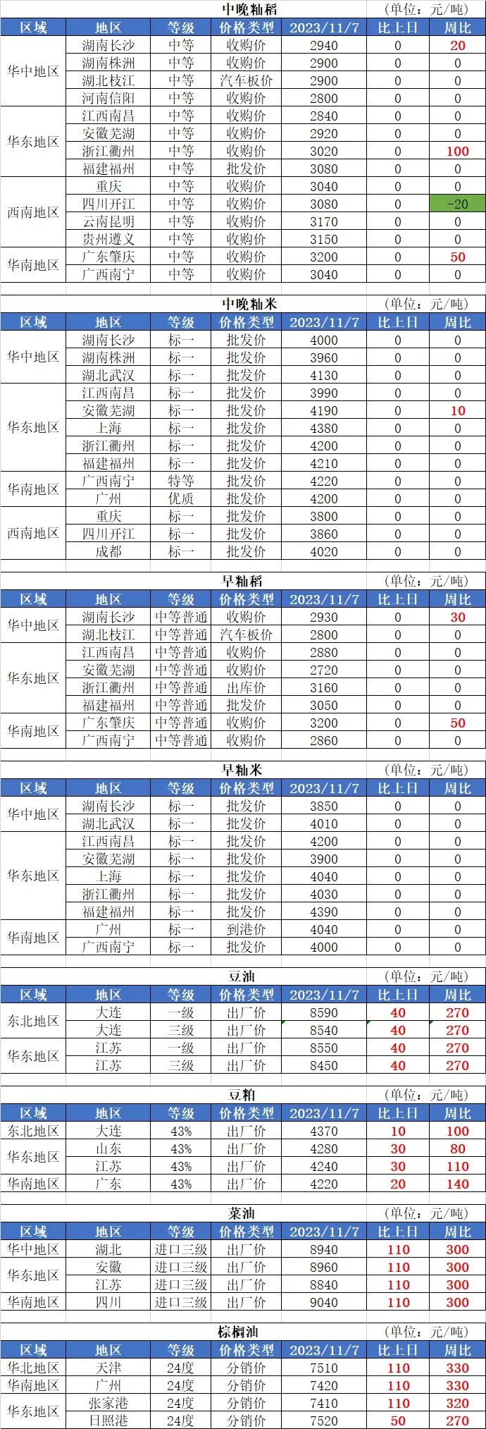 2、11月7日玉米價格局部上漲,其中:東北地區(qū)玉米價格基本穩(wěn)定;南北港口、南方銷區(qū)玉米價格小幅上漲,幅度10-20元/噸;華北地區(qū)玉米價格基本穩(wěn)定,局部價格上漲,漲幅10元/噸。