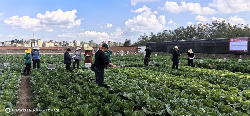 2023年11月7日,云南省種子管理站邀請(qǐng)了省內(nèi)有關(guān)專家在嵩明縣品種展示區(qū)開展了現(xiàn)場(chǎng)評(píng)價(jià)。專家組對(duì)117個(gè)大白菜、22個(gè)結(jié)球甘藍(lán)品種的抗性、一致性、產(chǎn)量、商品性等重要性狀進(jìn)行田間現(xiàn)場(chǎng)評(píng)價(jià)。