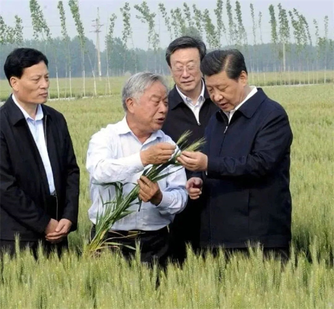 2014年5月9日,郭天財教授陪同習(xí)近平總書記在尉氏縣張氏鎮(zhèn)麥田視察調(diào)研
