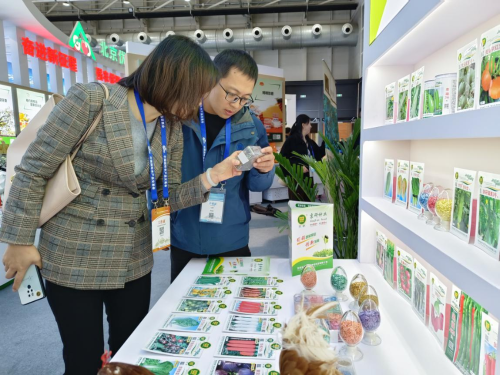 “能擺在農(nóng)交會現(xiàn)場的,每個品類都有不俗的表現(xiàn)、不凡的業(yè)績。”技術(shù)人員指著展陳在玻璃器皿中五彩繽紛的種子介紹說。“京科968”是我國三大玉米當(dāng)家品種之一,被譽(yù)為“我國近十年來作物育種的標(biāo)志性成果”,已推廣種植超過1.5億畝,增產(chǎn)糧食100多億公斤。“京科糯2000”不僅是我國鮮食玉米主導(dǎo)品種,還出口50多個國家和地區(qū)。京麥系列雜交小麥品種被視為應(yīng)對氣候異變、保障糧食安全新的戰(zhàn)略選擇,幫助巴基斯坦提高小麥單產(chǎn)水平最高達(dá)50%以上,十余年已初步建立覆蓋南亞、西亞和中亞的“一帶一路”北京雜交小麥聯(lián)合測試示范網(wǎng)。“這邊都是新品種蔬菜種子,每年約150萬斤播種在全國約2000萬畝菜田上。”技術(shù)人員繼續(xù)介紹,“它們還出口到美國、日本、俄羅斯等20余個國家,使‘中國菜’飄香世界。”