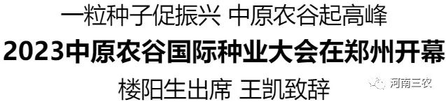 11月10日,2023中原農(nóng)谷國(guó)際種業(yè)大會(huì)在鄭州開(kāi)幕。省委書記樓陽(yáng)生出席,省長(zhǎng)王凱致辭。