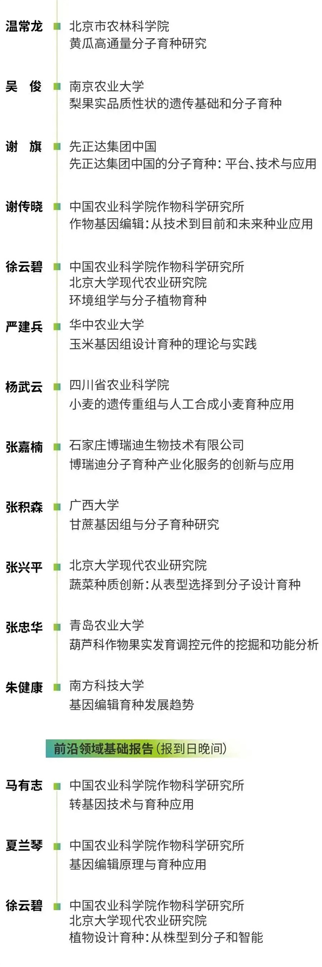 大會為分子育種感興趣的同行提供了多種形式的學(xué)習(xí)和交流機會,包括大會報到日舉行的基礎(chǔ)報告專場,詳細(xì)介紹基因編輯、轉(zhuǎn)基因和設(shè)計育種的基本原理和方法;29位知名專家組成的專題報告會,全方位交流不同物種和領(lǐng)域的分子育種進(jìn)展;八位專家參與的青年科學(xué)家論壇,突出體現(xiàn)分子育種青年人才的成就。