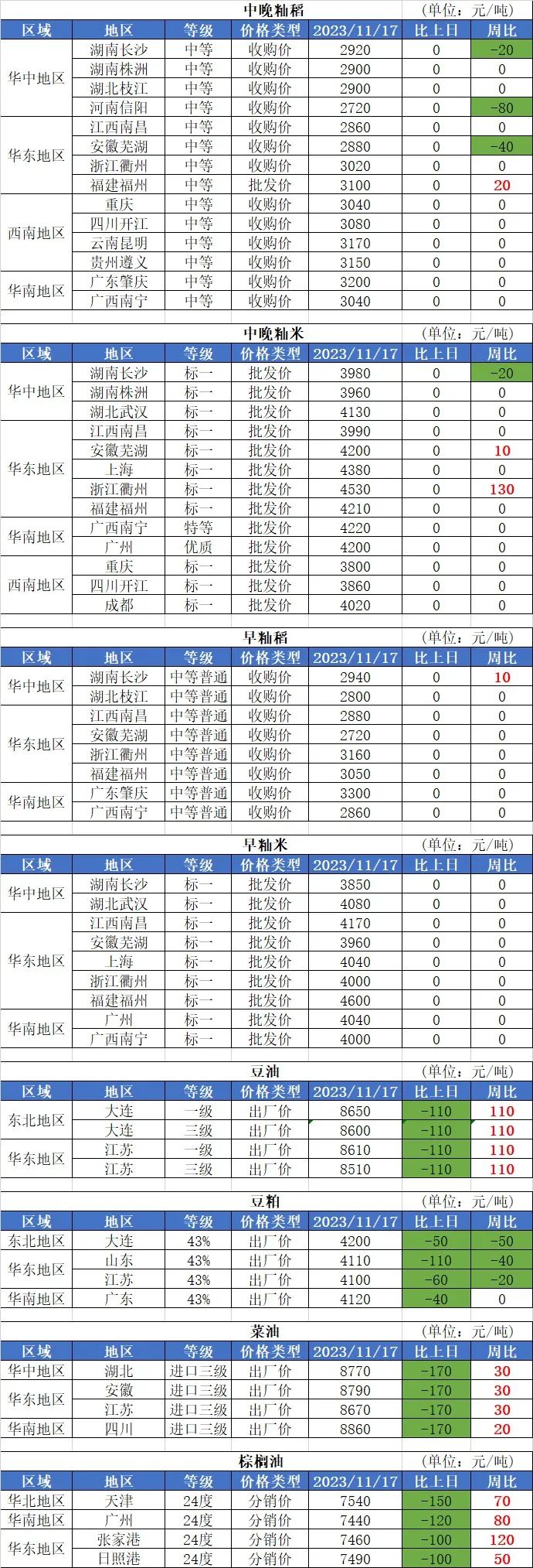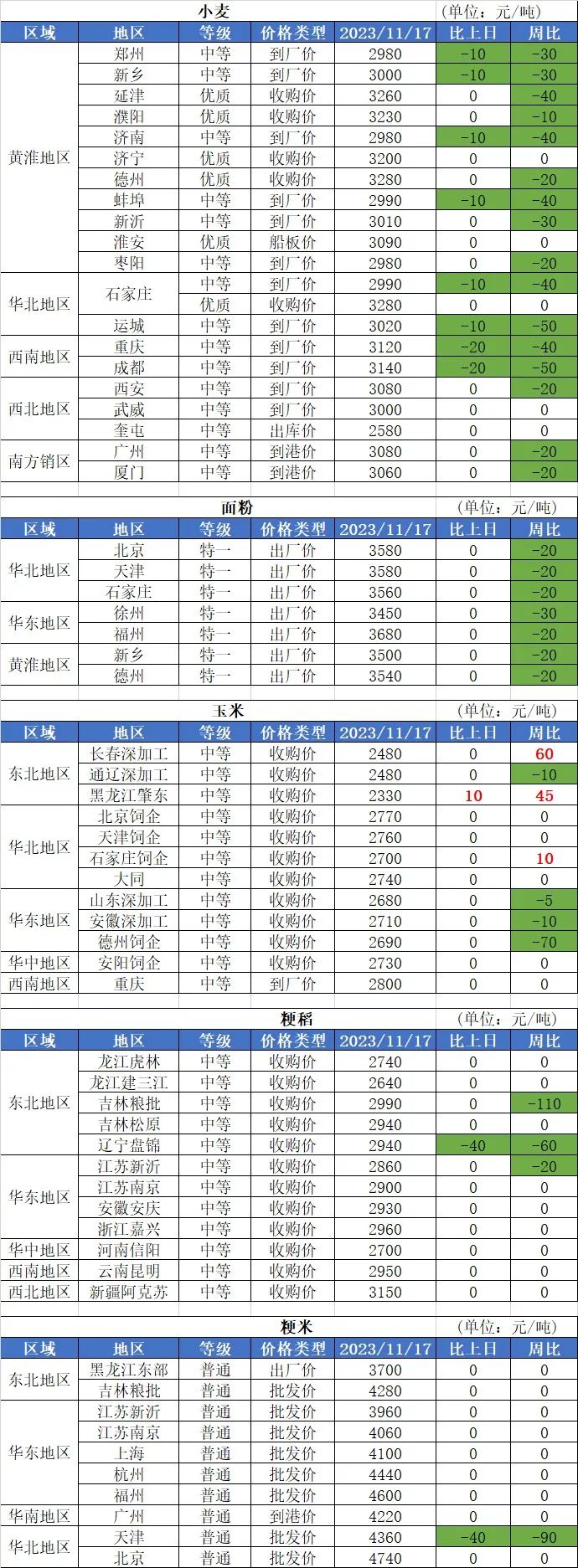 2、11月17日國內(nèi)玉米價(jià)格小幅調(diào)整,其中:南北港口、南方銷區(qū)玉米價(jià)基本穩(wěn)定;華北地區(qū)玉米價(jià)格基本穩(wěn)定,局部價(jià)格小幅下跌,跌幅10元/噸;東北地區(qū)玉米價(jià)格基本穩(wěn)定,局部價(jià)格小幅上漲,漲幅10-20元/噸。