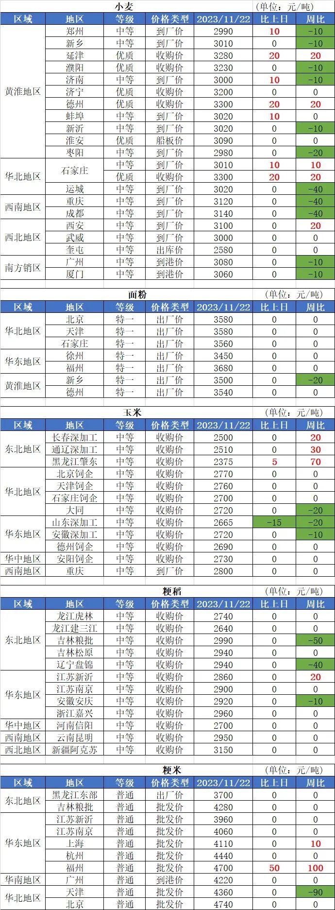 2、11月22日國內(nèi)玉米價格小幅波動,其中:南北港口、南方銷區(qū)玉米價基本穩(wěn)定;華北地區(qū)玉米價格基本穩(wěn)定,局部價格小幅下跌,跌幅10-36元/噸;東北地區(qū)玉米價格基本穩(wěn)定,局部價格小幅上漲,漲幅10-20元/噸。