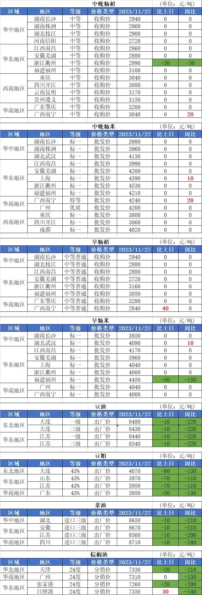 5、近期國內(nèi)油脂價格震蕩下行,市場購銷謹慎,進入12月國內(nèi)進口大豆以及菜籽量較多,特別是11月份有部分大豆延遲到港,棕櫚油高庫存的格局持續(xù),三大油脂庫存充足,價格走勢仍取決于南美天氣。