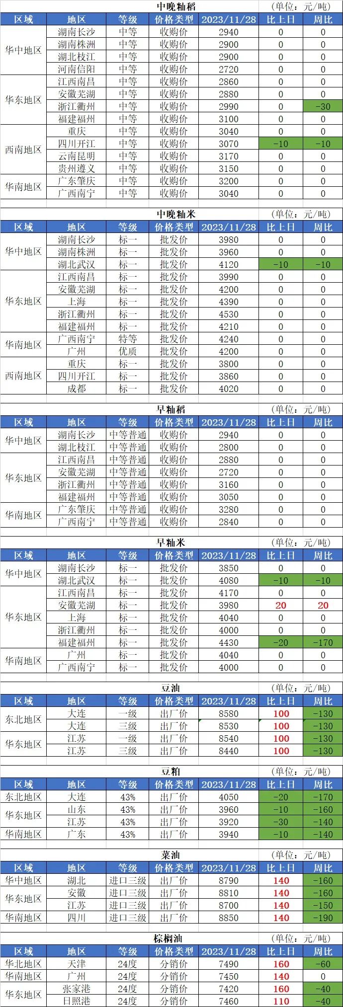 3、截至11月24日,湖北省入統(tǒng)企業(yè)累計(jì)收購(gòu)中晚秈稻166.12億斤,較去年同期減少10.1%。其中,新季中晚秈稻累計(jì)收購(gòu)103.61億斤,較去年同期減少2.1%。