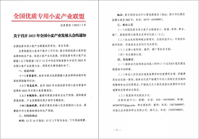 關于召開2023年全國小麥產業(yè)發(fā)展大會的通知