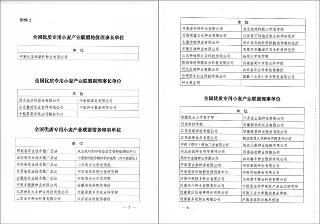 全國優(yōu)質專用小麥產業(yè)聯盟理事單位