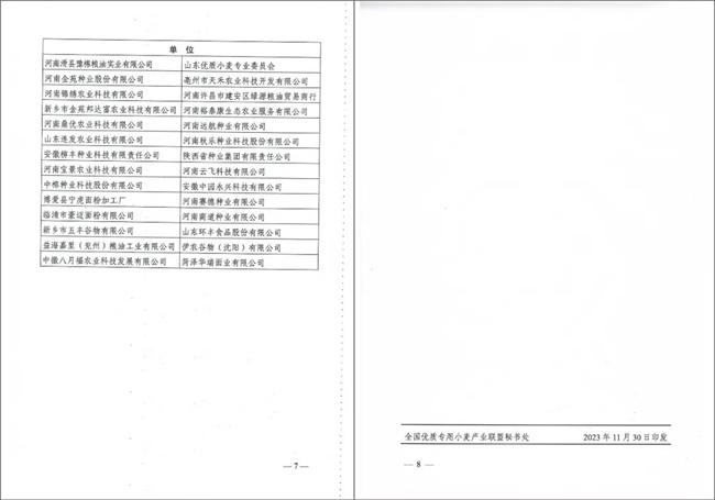 全國優(yōu)質專用小麥產業(yè)聯盟