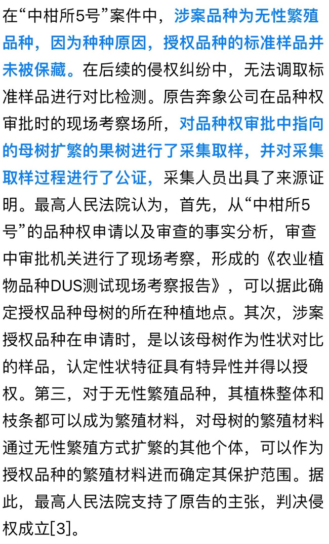 而在實踐中,欲證明侵權(quán)行為的存在,必然需要將被訴繁殖材料與涉案品種權(quán)進行比對。比對的對象即為兩個品種的樣品,如果樣品本身存疑,顯然會影響侵權(quán)行為的認定,因此,維權(quán)中植物品種樣品的選擇至關(guān)重要。