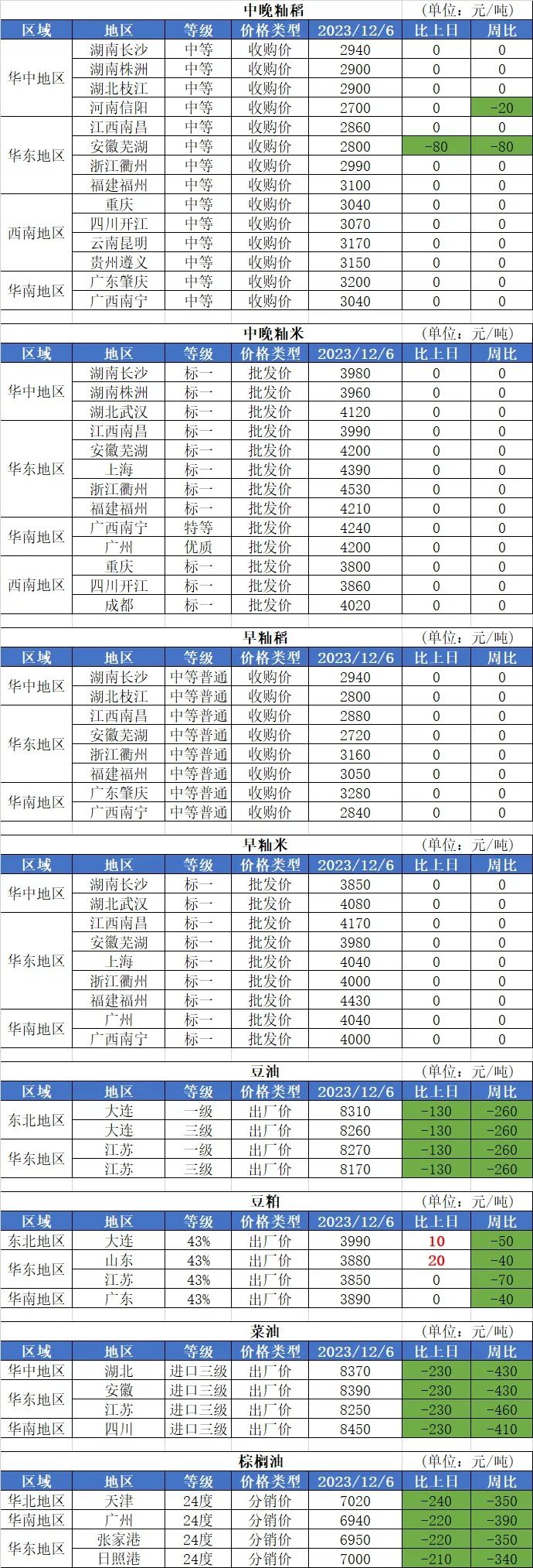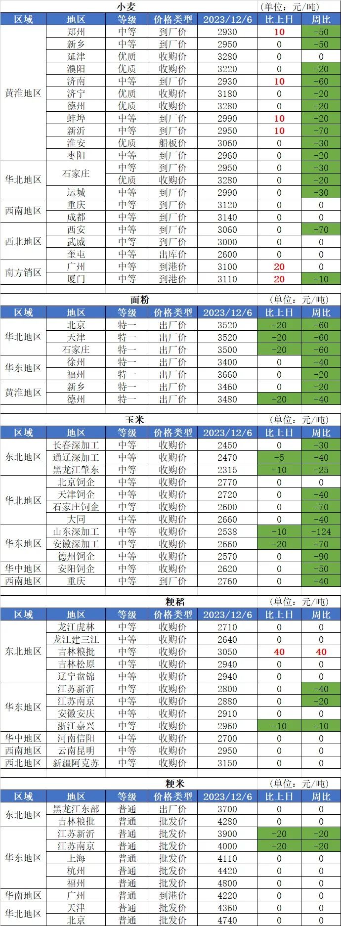 2、12月6日國內(nèi)玉米價(jià)格穩(wěn)中有跌,其中:南方銷區(qū)玉米價(jià)格基本穩(wěn)定;華北地區(qū)、東北地區(qū)、南北港口玉米價(jià)格基本穩(wěn)定,局部價(jià)格小幅下跌,跌幅10-20元/噸。