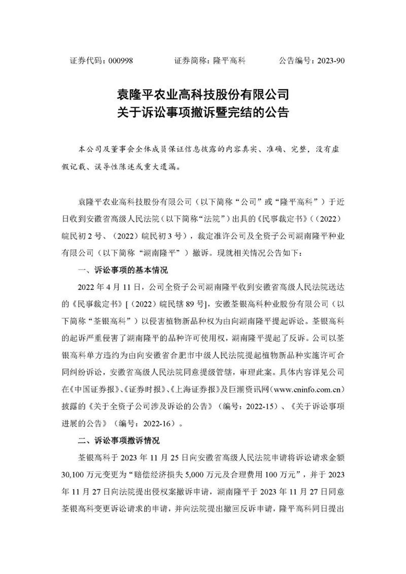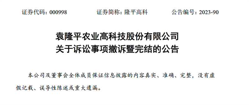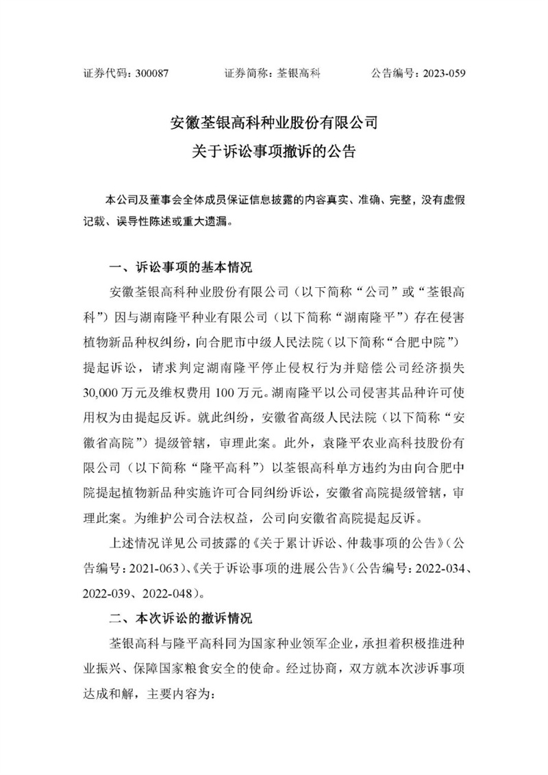 兩大巨頭之爭(zhēng)終結(jié)!荃銀、隆平達(dá)成和解