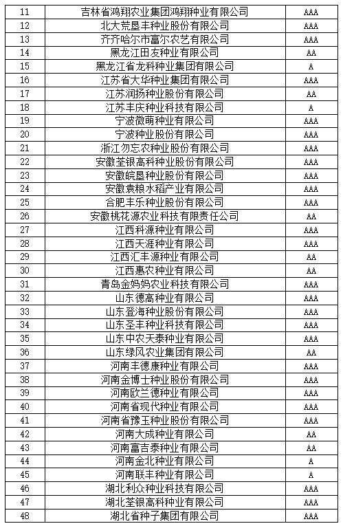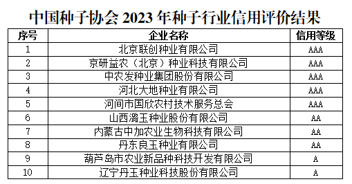 根據(jù)《中國種子協(xié)會行業(yè)信用評價管理辦法》規(guī)定,現(xiàn)對2023年種子行業(yè)信用評價評審結果予以公示,公示時間為10個工作日(2023年12月8日至12月21日)。公示期內,如對公布的企業(yè)信用評價結果有異議,請向我會信用評價辦公室反映。反映問題需真實客觀,并提供證據(jù),反映人需用真實姓名并提供聯(lián)系方式,不受理匿名意見。