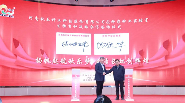 12月9日,河南秋樂種業(yè)科技股份有限公司(以下文中簡(jiǎn)稱“秋樂種業(yè)”)科技創(chuàng)新戰(zhàn)略合作簽約儀式暨上市一周年慶典活動(dòng)在中原農(nóng)谷隆重舉行。
