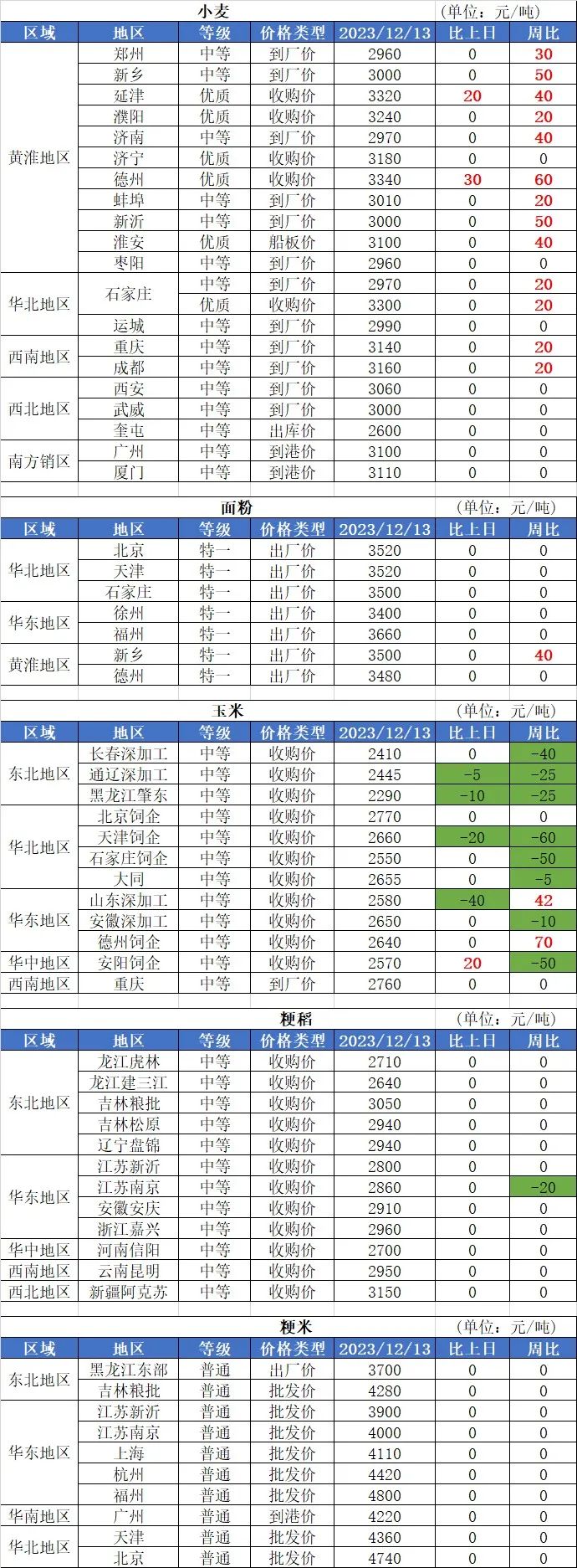 2、12月13日國(guó)內(nèi)玉米價(jià)格局部調(diào)整,其中:華北地區(qū)、南方銷區(qū)玉米價(jià)格基本穩(wěn)定;東北地區(qū)、南北港口玉米價(jià)格基本穩(wěn)定,局部?jī)r(jià)格小幅下跌,跌幅10-20元/噸。