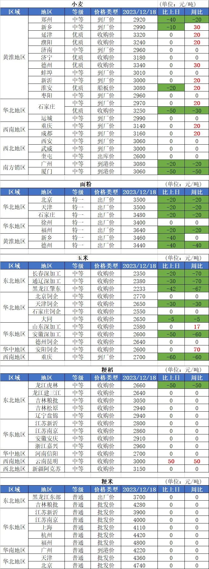 2、12月18日國內玉米價格局部下跌,其中:南北港口、南方銷區(qū)玉米價基本穩(wěn)定;東北地區(qū)、華北地區(qū)玉米價格基本穩(wěn)定,局部價格下跌,跌幅10-40元/噸。