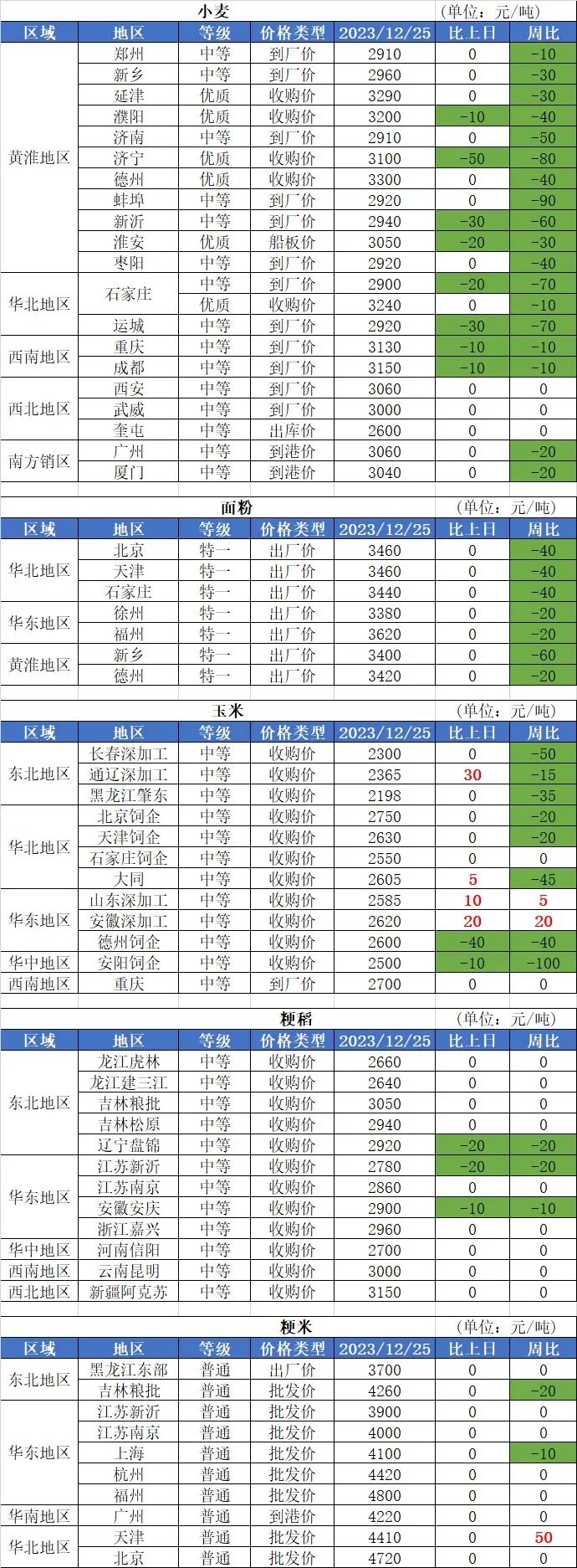 2、12月25日國(guó)內(nèi)玉米價(jià)格互有漲跌,其中南方銷區(qū)玉米價(jià)格基本穩(wěn)定;南北港口玉米價(jià)格小幅上漲,漲幅20-30元/噸;華北地區(qū)、東北地區(qū)玉米價(jià)格基本穩(wěn)定,局部?jī)r(jià)格小幅震蕩,幅度10-30元/噸。