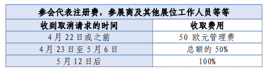 所有項(xiàng)目的更改和取消必須以書面形式(電子郵件)發(fā)送至Core PCO K.I.T. Group GmbH,郵箱 [email protected],這也同樣適用于取消額外的會(huì)議和訂單(高爾夫球比賽、洽談桌、私人會(huì)議室)。