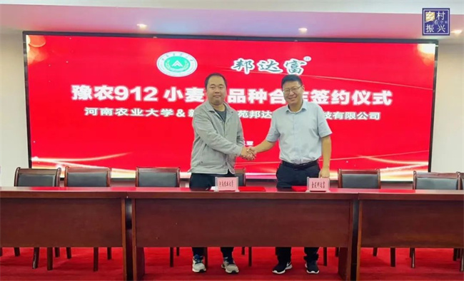 1月3日,在海南舉辦的河南省農(nóng)學(xué)會產(chǎn)業(yè)振興專委會第一屆第五次學(xué)術(shù)交流會上,河南農(nóng)業(yè)大學(xué)與新鄉(xiāng)市金苑邦達(dá)富農(nóng)業(yè)科技有限公司舉行了小麥新品系“豫農(nóng)912”合作簽約儀式。參加會議的河南省農(nóng)業(yè)農(nóng)村廳有關(guān)領(lǐng)導(dǎo)、行業(yè)專家、學(xué)者、種子企業(yè)代表共同見證“豫農(nóng)912”合作簽約。