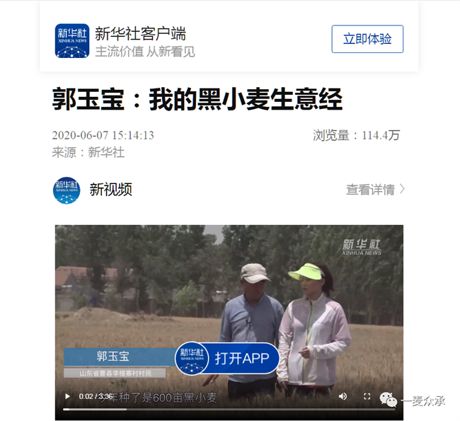 牡丹之鄉(xiāng),山東省菏澤市曹縣農(nóng)民郭玉寶潛心研究黑小麥 20 余年,科學定向選育出 30 余個新品(系),總結出一套優(yōu)質(zhì)黑小麥高產(chǎn)栽培技術,輻射帶動本縣及周邊市縣等 5縣區(qū)14個鎮(zhèn)街23個村的 500 多戶農(nóng)民種植黑小麥增收致富。(新華社報導:https://xhpfmapi.zhongguowangshi.com/vh512/share/9154015?channel=weixin&from=groupmessage)。