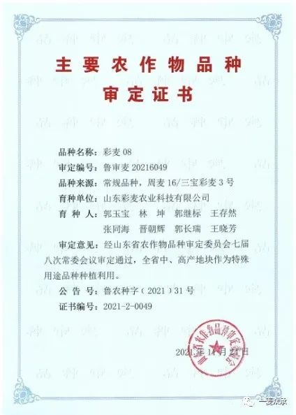 近幾年來,通過研發(fā)彩色小麥及產(chǎn)銷融合,為農(nóng)民增收和鄉(xiāng)村振興作出了突出貢獻。我先后被評為“全國科普惠農(nóng)興村帶頭人”、“全國糧食生產(chǎn)大戶”、山東省“齊魯鄉(xiāng)村之星”,山東省十三屆人大代表、山東省勞動模范,山東省高素質(zhì)農(nóng)民大師,菏澤市第二屆優(yōu)秀農(nóng)村實用人才等榮譽稱號。如今,已培育成功 2 個彩色小麥新品種,2021、2022 年先后通過山東省審定"彩麥 07、彩麥 08”兩個品種。在種植推廣面積不斷擴大的基礎上,郭玉寶欲開始第三次創(chuàng)業(yè),創(chuàng)辦山東彩麥農(nóng)業(yè)科技有限公司,走民間科技企業(yè)之路。