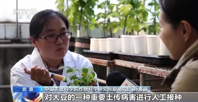 中國農(nóng)業(yè)科學(xué)院作物科學(xué)研究所副研究員 孫素麗:我現(xiàn)在做的是對大豆的一種重要土傳病害進行人工接種,通過人工注射的方式,將病原菌注射在植株上,經(jīng)過保濕培養(yǎng),三天之后,觀察這個植株的發(fā)病情況。如果是能夠正常健康生長,說明是抗病的,如果枯萎死亡,說明是感病的,我們通過這種方式,就能夠精準鑒定出優(yōu)異的抗病(種質(zhì))資源。