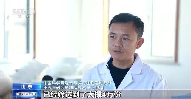 中國科學(xué)院遺傳與發(fā)育生物學(xué)研究所田志喜研究員團隊技術(shù)員 馬燕明:經(jīng)過前期一些群體的培育,已經(jīng)篩選到了大概4萬份,今年在農(nóng)高區(qū)這個鹽堿地進行一個篩選,篩選完之后挑選一些優(yōu)異的材料然后去進行南繁。