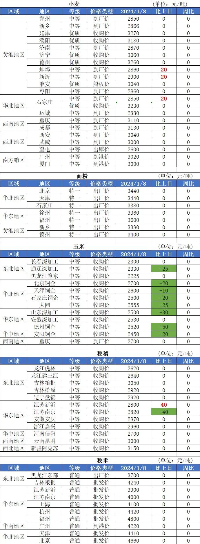 2、2024年第1周,國內(nèi)玉米價格弱勢震蕩開局。北方中儲糧增儲計劃啟動以及東北部分農(nóng)戶惜售一定程度上支撐玉米價格,南方部分銷區(qū)糧價略有反彈,但預(yù)計2024年一季度糧價維持弱勢震蕩格局不改。