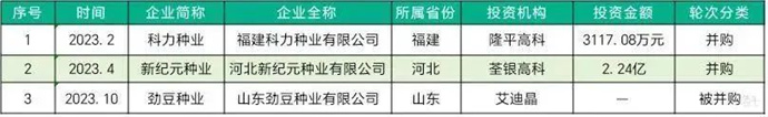 圖:2023年來我國育種賽道兼并重組情況
