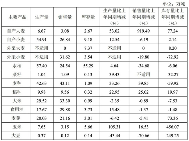 蘇墾農(nóng)發(fā)主要產(chǎn)品產(chǎn)銷量經(jīng)營數(shù)據(jù):