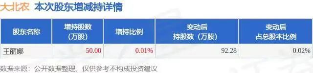 1月3日大北農(nóng)發(fā)布公告《大北農(nóng):關(guān)于副董事長及其一致行動人增持公司股份的公告》,其股東王麗娜于2024年1月2日合計增持50萬股,占公司目前總股本的0.0121%,變動期間該股股價下跌0.84%,截止1月2日收盤報5.91元。