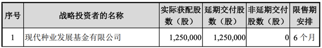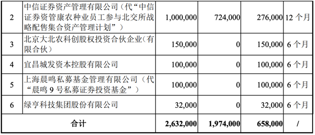 其中,現(xiàn)代種業(yè)發(fā)展基金有限公司獲配125萬股,中信證券資產(chǎn)管理有限公司(代“中信證券資管康農(nóng)種業(yè)員工參與北交所戰(zhàn)略配售集合資產(chǎn)管理計劃”)、北京大北農(nóng)科創(chuàng)股權(quán)投資合伙企業(yè)(有限合伙)、宜昌城發(fā)資本控股有限公司、晨鳴資管、綠亨科技分別獲配100萬股、15萬股、10萬股、10萬股、3.2萬股。