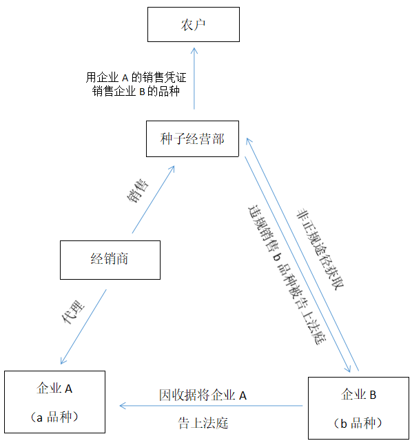 企業(yè)A授權自己所屬品種a給某地區(qū)代理商(經銷商)銷售,后由地區(qū)代商將種子賣給種子經營部(零售門店),而該種子經營部(零售門店)從其他渠道獲取了無代理權的企業(yè)B所屬品種b(該品種為常規(guī)種,農戶可自留)進行銷售。