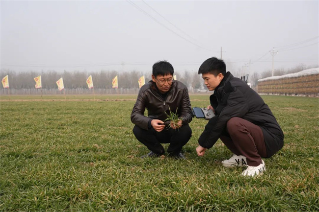 會后,與會核心經(jīng)銷商到洪育麥2號小麥田進行了觀摩,據(jù)介紹,洪育麥2號為2023年河南省審定,分蘗力強,成穗率高,產(chǎn)量三要素協(xié)調(diào),穩(wěn)產(chǎn)高產(chǎn),增產(chǎn)潛力大;株高適中,抗倒性好;后期熟相好,容重高,品質(zhì)優(yōu)。洪育麥2號當前苗期的抗凍性及分蘗能力等直觀優(yōu)秀表現(xiàn)得到了現(xiàn)場合作伙伴的高度認可和稱贊。