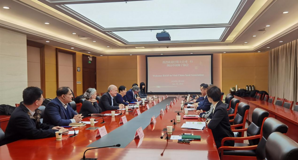 1月18日上午,巴斯夫公司農業(yè)解決方案部全球種業(yè)副總裁托馬斯·舒勒爾(Thomas Schuler)先生一行八人到訪中國種子協(xié)會。我會副會長兼秘書長蔣協(xié)新、副會長鄧光聯(lián)以及合作交流部和綜合管理部人員接待了來訪嘉賓。雙方交流了各自關心的問題,并探討了如何在種業(yè)領域開展合作。