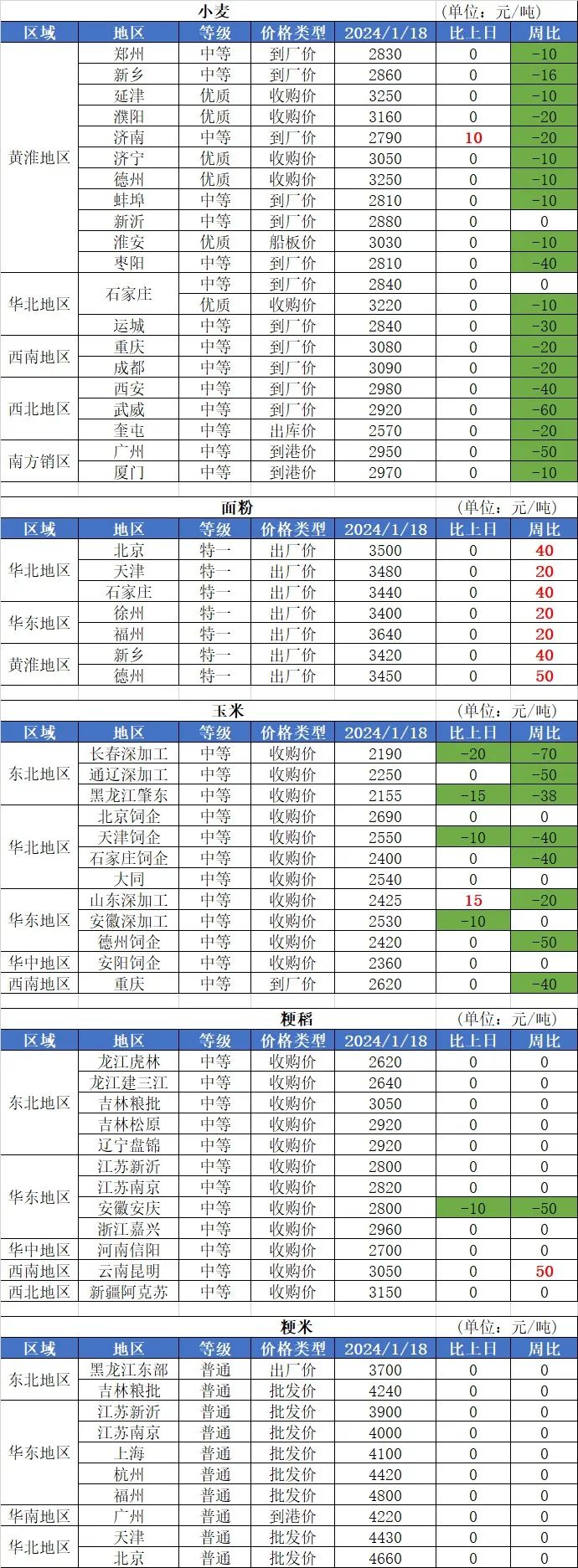 2、1月18日國內(nèi)玉米價格震蕩下行,其中:華北地區(qū)玉米價格基本穩(wěn)定;南北港口、東北地區(qū)玉米價格局部小幅下跌,跌幅10-20元/噸;南方銷區(qū)玉米價格下跌,跌幅10-40元/噸。