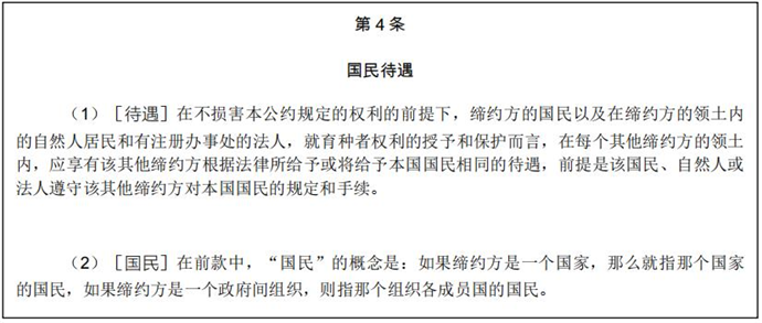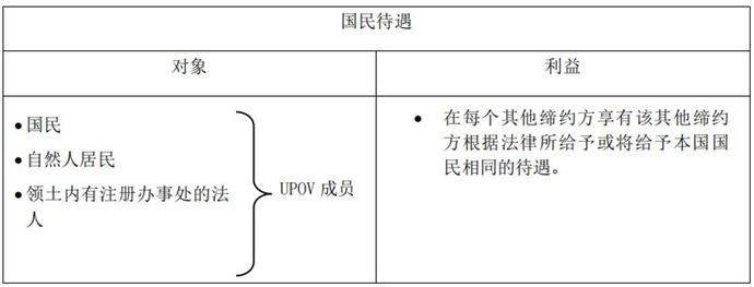 《UPOV公約》第4條對國民待遇作出定義: