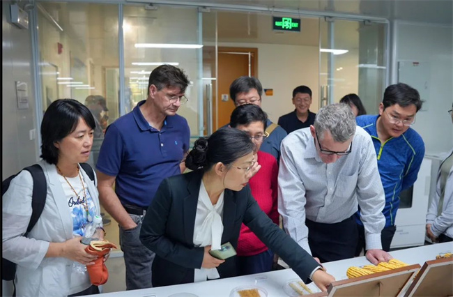 托馬斯·舒勒爾(Thomas Schuler)一行參觀了墾豐種業(yè)賓西產(chǎn)業(yè)園區(qū),在品種展廳詳細了解了公司主營作物品種結(jié)構(gòu)、分布區(qū)域、產(chǎn)量表現(xiàn)等方面情況,對品種適應(yīng)區(qū)內(nèi)種植戶的種植習(xí)慣、栽培模式作了細致的了解。在研發(fā)中心,參觀了生命科學(xué)中心,對分子輔助育種全流程進行深入了解。