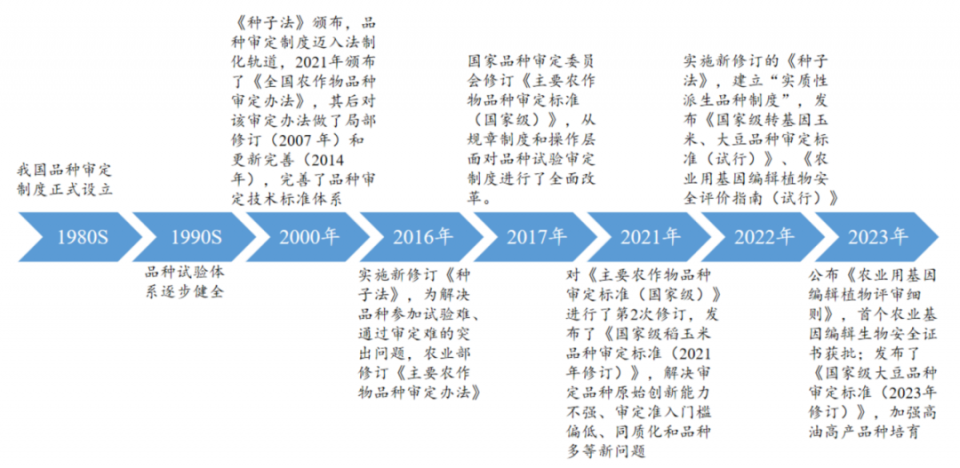 自1981年第一屆國家農(nóng)作物品種審定委員會成立,標志著我國品種審定制度基本形成,品種審定制度逐漸完善,形成了以品種審定為基礎(chǔ)的市場準入制度、以植物新品種權(quán)為基礎(chǔ)的產(chǎn)權(quán)保護制度,逐漸完善了我國農(nóng)作物種業(yè)法規(guī)體系。