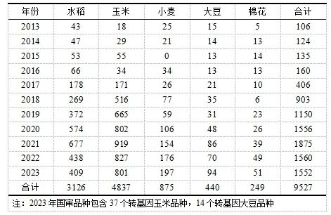 2013-2023年主要農(nóng)作物國家審定品種數(shù)量