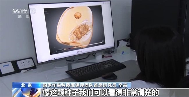 國家作物種質(zhì)庫保存團(tuán)隊(duì)首席研究員 辛霞:這顆種子有一個非常巨大的成蟲在里邊,雖然這粒種子外觀上看上去非常完整,但像這樣的種子它不應(yīng)該進(jìn)庫。