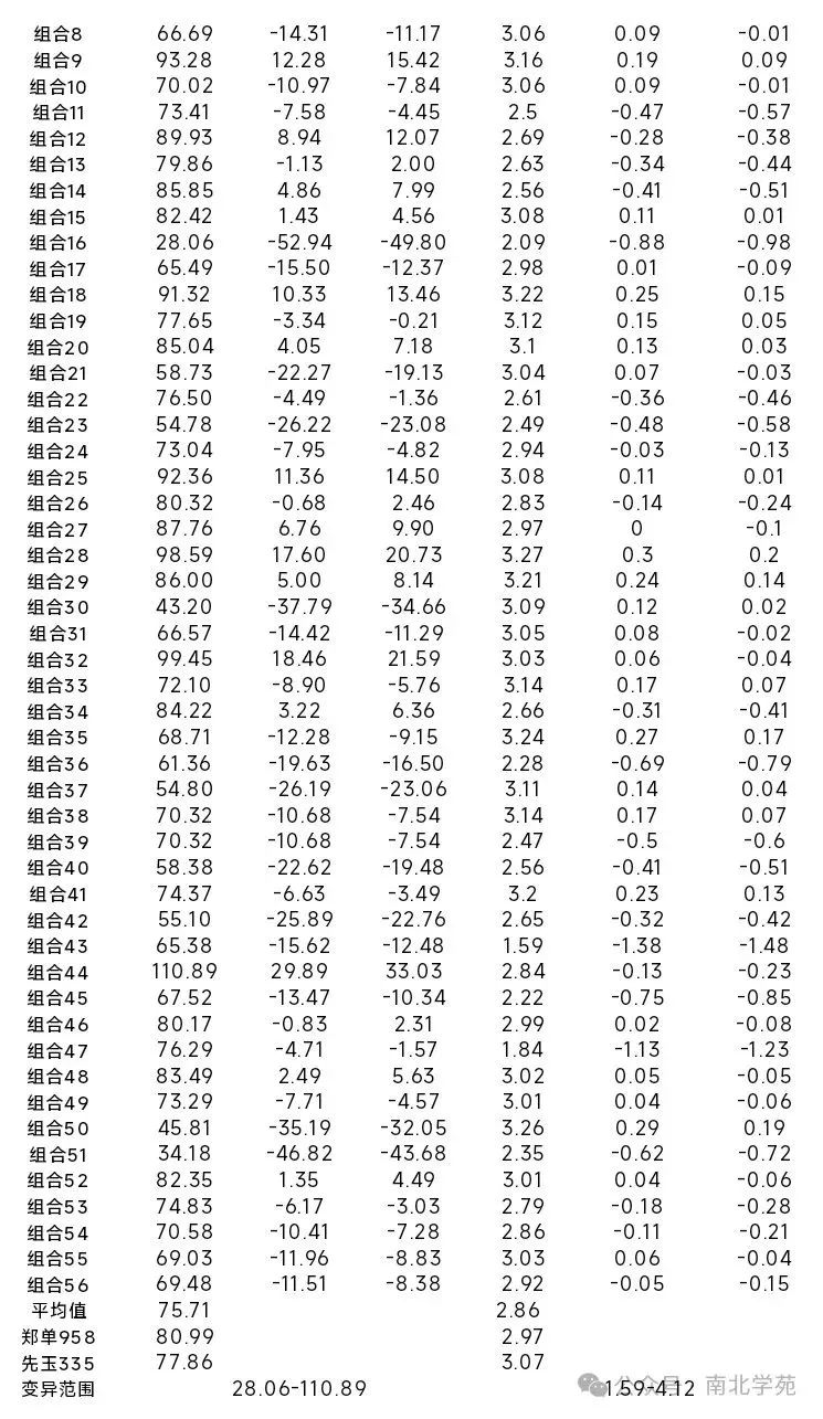 即兩個一般配合力效應(yīng)都高的親本所組配的組合的特殊配合力效應(yīng)不一定就高,兩個親本的一股配合力較低或一高一低組配的組合的特殊配合力效應(yīng)值也有可能很高,說明基因間相互作用非常重要。