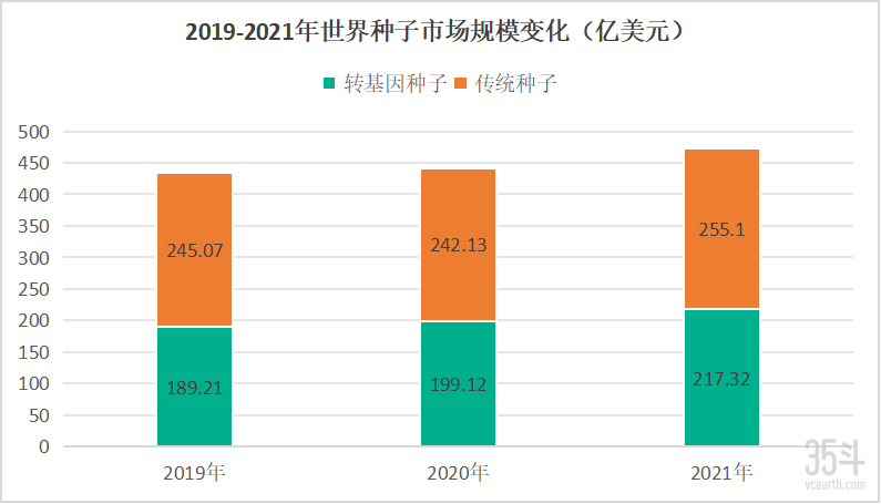 根據(jù)IHS Markit,2021年全球商業(yè)轉(zhuǎn)基因種子銷售總額約為218億美元,較2020年增長(zhǎng)11.6%。盡管只有19%的作物面積,但其市場(chǎng)規(guī)模占比已經(jīng)高達(dá)46%。