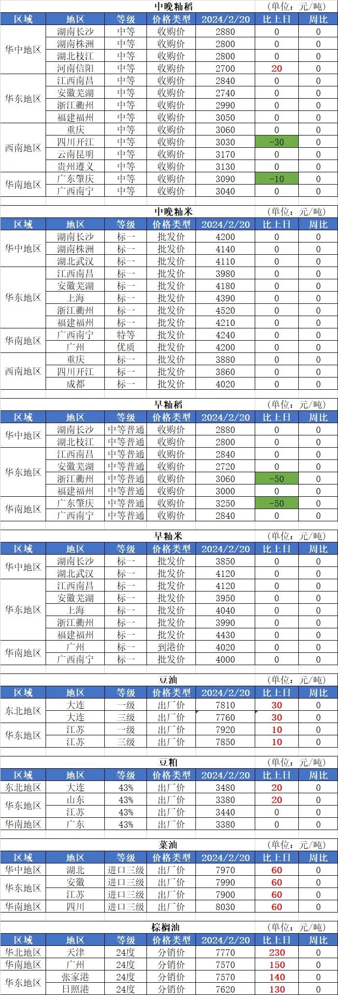 3、目前稻米市場購銷暫未全面恢復(fù),需求表現(xiàn)疲弱,購銷活躍度偏低,市場觀望情緒較高。下游大米市場仍處于消化期,部分大米加工企業(yè)尚末開機(jī),整體交易清淡。