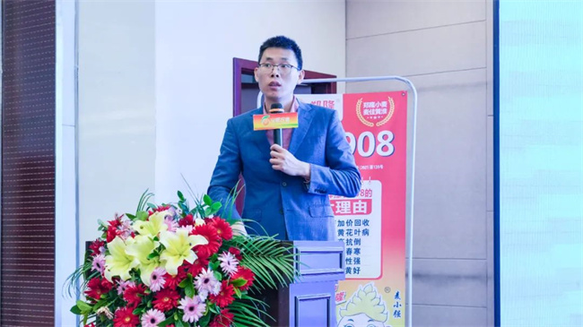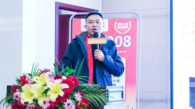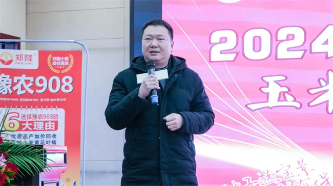 拳頭品種是核心競爭力。多年來,通過借助看禾選種等平臺契機,寶景農(nóng)業(yè)與河南農(nóng)業(yè)科學(xué)院、河南農(nóng)業(yè)大學(xué)、貴州農(nóng)業(yè)科學(xué)院等省內(nèi)外多家科研單位達成了緊密的商業(yè)化育種合作,并育成了一批品質(zhì)、產(chǎn)量、抗性俱佳且適應(yīng)市場需求的玉米、小麥新品種。這些品種在省內(nèi)外市場獲得大面積推廣。寶景農(nóng)業(yè)鄭隆事業(yè)部經(jīng)理劉長在會上著重介紹了抗倒性好、產(chǎn)量高、抗病抗逆強的玉米品種—鄭單6161,分享了鄭單6161近年來在各地優(yōu)秀表現(xiàn);豫農(nóng)908小麥品種因其抗寒性好,抗倒性好,容重高,熟相好,產(chǎn)量高等優(yōu)點,自審定推廣以來,深受市場歡迎,市場占有率穩(wěn)步提升。并對2024年度玉米、小麥有關(guān)工作做周密安排!