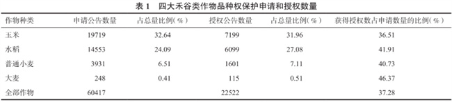 2.1我國四大禾谷類作物品種權保護申請和授權現狀