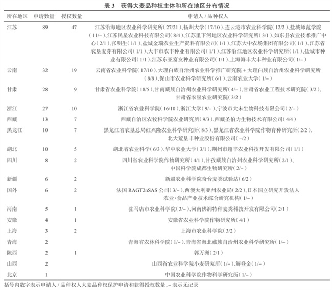 2.4大麥品種權主體和申請地區(qū)分布情況