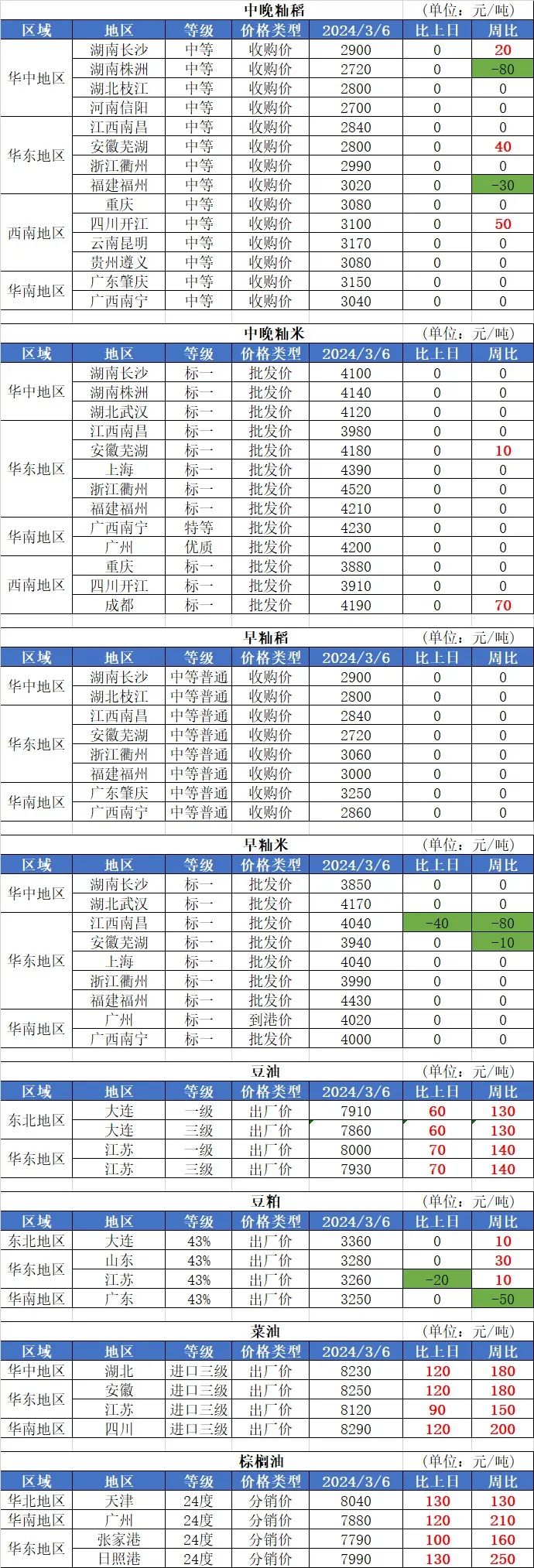 3、截至3月5日,安徽省累計(jì)收購新季中晚稻736萬噸,較去年同期增加17.5%。其中中晚秈稻累計(jì)收購646.4萬噸,粳稻累計(jì)收購89.1萬噸。